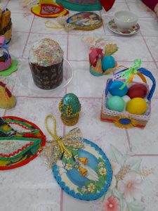 В прошедшее воскресение все православные христиане отметили светлый и радостный праздник Воскресение Христово. Пасха самый продолжительный праздник, вся праздничная неделя называется светлой. Пасха всегда считалась семейным праздником. Пасхальный стол был роскошным: обильным, очень красивым и нарядным. Наши женщины тоже постарались – украсили стол столе обилием сладостей: пасхальные куличи, сдобные булочки и печенье, конфеты и конечно, крашенные яйца. Наши рукодельницы подготовили красивые пасхальные корзинки, подставки для яиц, которые придали особое настроение мероприятию.