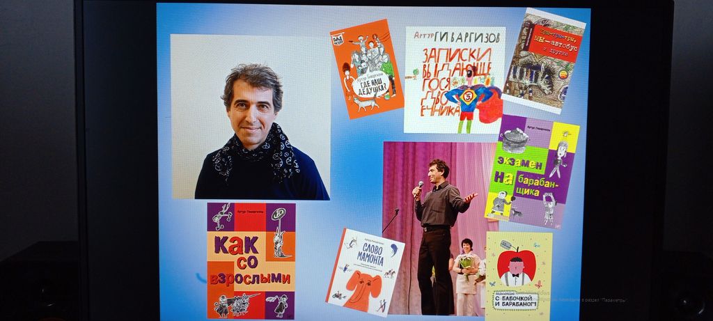 Артур Гиваргизов появился в детской литературе сравнительно недавно и стал любимым писателем для многих. Герои его рассказов и стихотворений остроумны, непредсказуемы и очень похожи на каждого из взрослых и детей. В своих произведениях писатель избегает назидательности, никого ничему не учит. Но дети и взрослые могут учиться сами, самостоятельно делая выводы по сюжетам. В произведениях Гиваргизова есть что-то авантюрное и все они полны юмора, читая их невозможно удержаться от смеха, и поэтому мероприятие прошло весело и интересно. Школьники познакомились с биографией писателя, о котором было сказано: в свободное от писательства время преподаёт классическую гитару, в свободное от преподавания время ходит по горам, в свободное от ходьбы по горам время пишет детские книжки. Разговор о писателе чередовался со знакомством с его стихами, из которых ребята узнали, как нужно выполнять домашнее задание, чем можно погладить брюки, как заслужить кошку и многое другое. Присутствующие также разгадывали шарады, расставляли правильно знаки препинания, знакомились с тавтограммами и придумывали предложение, в котором все слова на одну и ту же букву. Завершилось мероприятие чтением стихотворения «Чего боятся хулиганы» и наставлением героя стихотворения «По улице Большая Полянка»: «Учиться надо, а потом уже «погадаю»».