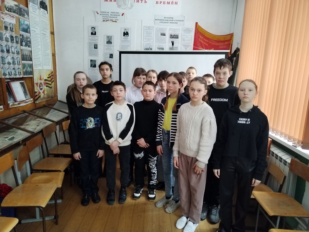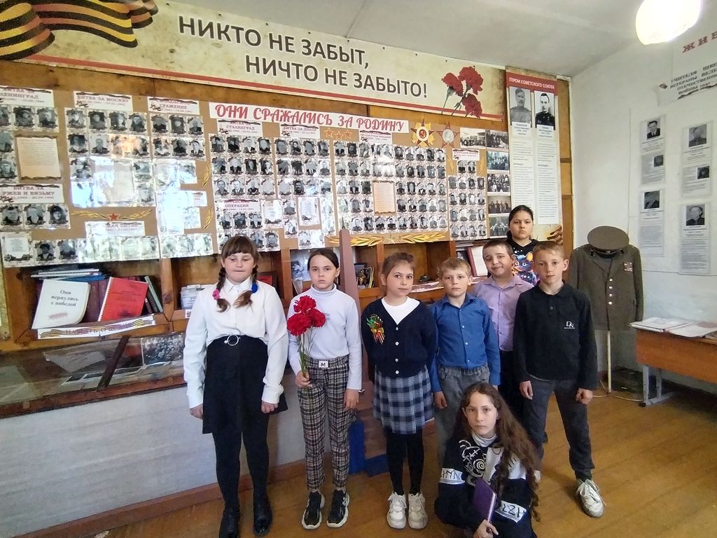 В рамках празднования 80-летия Победы в Великой Отечественной войне 1941 – 1945 г.г. в музее Степнинской сельской библиотеки № 34 для обучающихся 1 — 5 классов прошли экскурсии и уроки мужества «У подвига нет границ».