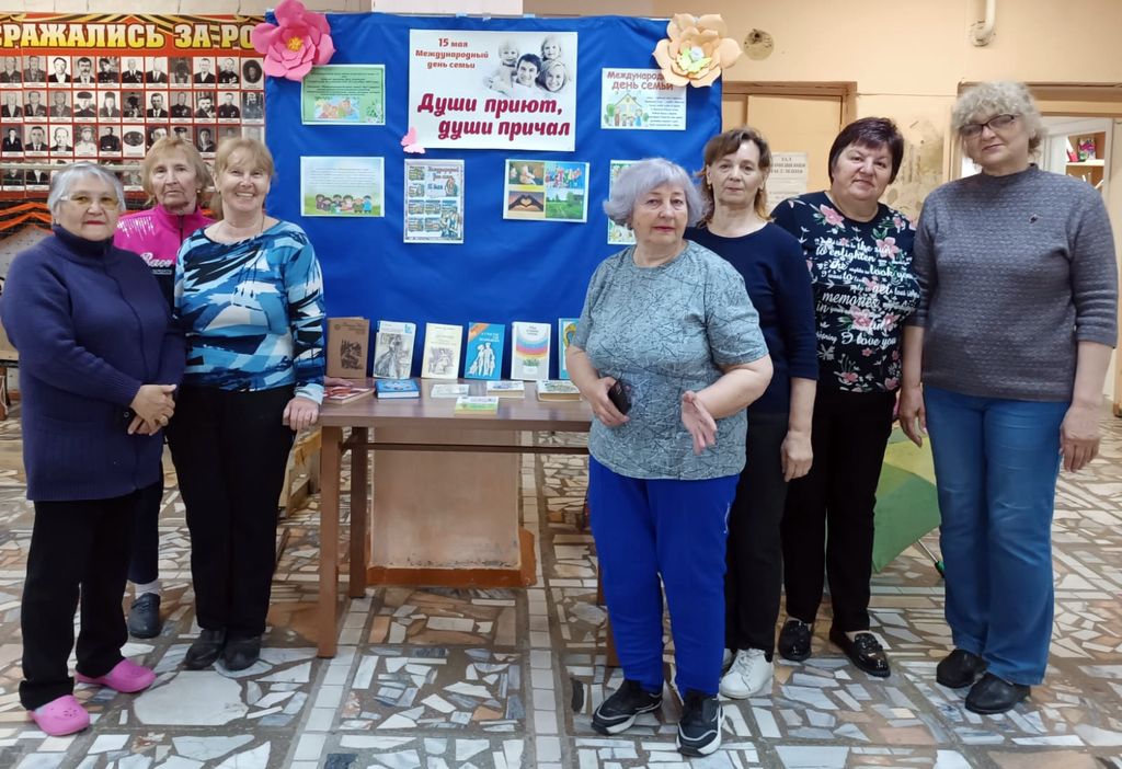 Шел разговор о семейных ценностях и соблюдении добрых традиций, объединяющих родных и близких. Участники мероприятия вспомнили пословицы и песни о семье, делились воспоминаниями о своем детстве, своих семейных традициях, обсудили современные методы воспитания детей. Ознакомились с информационно-книжной выставкой «Души приют, души причал». Тема семьи находит свое отражение на страницах многих художественных произведений русских и зарубежных авторов. Эта тема вечная, интересная, наталкивающая на размышления, а порой и споры. На выставке были представлены следующие книги: «Вечный зов» Анатолий Иванов, «Отцы и дети» Иван Тургенев, «Вишневый сад» Антон Чехов и др., рассказывающие о семье, детях, бабушках и дедушках