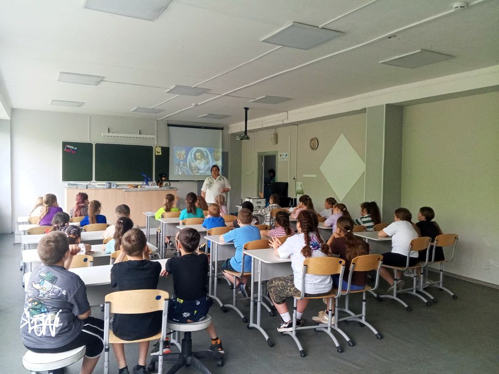 Для детей, посещающих летний пришкольный лагерь «Эколенд», состоялось литературное путешествие «За ученым котом в сказку мудрую войдем». Дети совершили увлекательное путешествие по сказкам А.С. Пушкина, а также познакомились с «детской» и «лицейской» страницей жизни писателя. В гости к ребятам пришёл учёный Кот, вместе с ним они путешествовали по «сказочной» странице, где посетили «Музей сказочных предметов», рассказали про «Сказочные прилагательные», показали «Чудеса из сказки», где из слогов составляли слова. На «стихотворной» странице ребята читали стихи. В викторине «Кот учёный приглашает» отвечали на вопросы учёного Кота, участвовали в конкурсах «Там на неведомых дорожках», «Подскажи словечко». Познакомились с книжной выставкой «Идут века, а Пушкин остаётся». Очень приятно, что ребята знают наизусть стихи А.С. Пушкина. Все задания прошли интересно и увлекательно, дети получили много интересной информации.