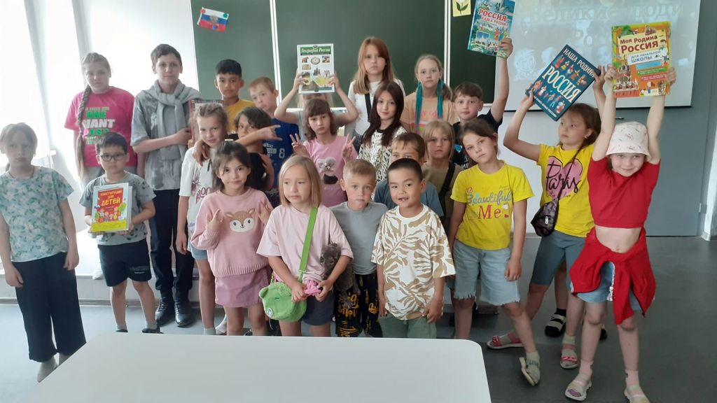 Участниками мероприятия стали дети, посещающие летний пришкольный лагерь «Эколенд». На мероприятии ребята познакомились с книжной выставкой » Это всё — Россия», на которой была представлена литература по истории России, о государственной символике и памятных датах РФ, о науке и культуре страны, о традициях и обычаях народов России, о выдающихся россиянах. Из беседы «С чего начинается Родина» дети узнали о символах России — флаге, гербе и гимне страны и истории их происхождения, об истории нашей страны, о природе России, о многообразии населяющих её народов. Участвуя в игре -викторине «Путешествуем по России», ребята смогли проверить свои знания, отвечая на вопросы о достопримечательностях и традициях России. С интересом они угадывали русские народные сказки, вспоминали пословицы и поговорки.