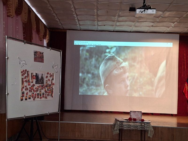 Далее последовал просмотр презентации «Как начиналась война». Кадры хроники, лица солдат, разрушенные города – все это стало для детей окном в прошлое, позволившим увидеть и прочувствовать трагизм тех событий. Особенным моментом стал показ фильма «Солдатик». История маленького мальчика, потерявшего родных и нашедшего приют у солдат, не оставила равнодушным никого. Ребята сопереживали герою, понимая, какой ценой досталась победа. Вниманию ребят была представлена книжная выставка «В сердцах и книгах память о войне». На выставке были представлены книги о войне, стихи и рассказы, повествующие о мужестве, героизме и трагедии тех лет. В завершении мероприятия дети совместно создали плакат «Свеча памяти», ставший символом скорби и надежды, символом вечной памяти о героях. Все участники возложили цветы к памятнику воинам Великой Отечественной войны. Этот жест стал символом уважения к подвигу тех, кто отстоял мир на земле, и обещанием хранить память о войне в своих сердцах.