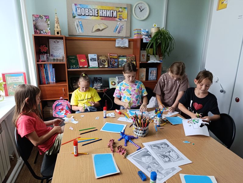 Лето, пожалуй, любимое время года всех детей, когда можно гулять, путешествовать, купаться, загорать и заниматься любимым творчеством. На мастер-классе ребята изготавливали объемные аппликации, используя картон для основы, цветную бумагу, ножницы, клей, цветные карандаши и фломастеры. Все работы получились очень яркими и красивыми. В конце мастер-класса дети с большим удовольствием вместе с библиотекарем читали сказки В. Сутеева.