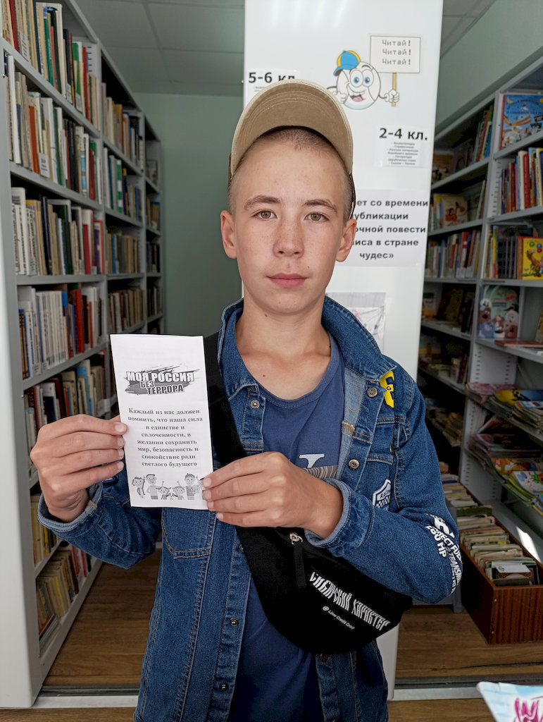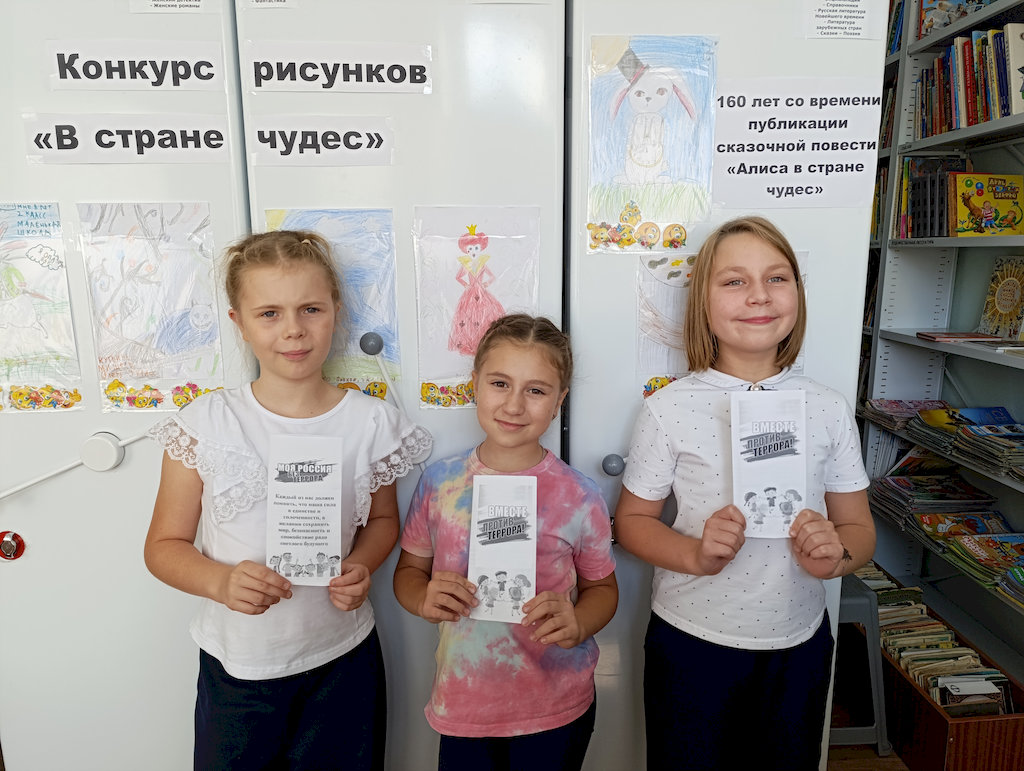 Ко Дню солидарности в борьбе с терроризмом, библиотекарь Лебедевской сельской библиотеки №33 подготовила буклеты «Вместе против террора!», которые раздавались читателям в течение дня, 3 сентября. В буклете отражена следующая информация: понятие терроризм, как распознать террориста, а самое важное как нужно себя вести при совершении теракта. Так же в этот день прошла беседа «Трагедия Беслана».
