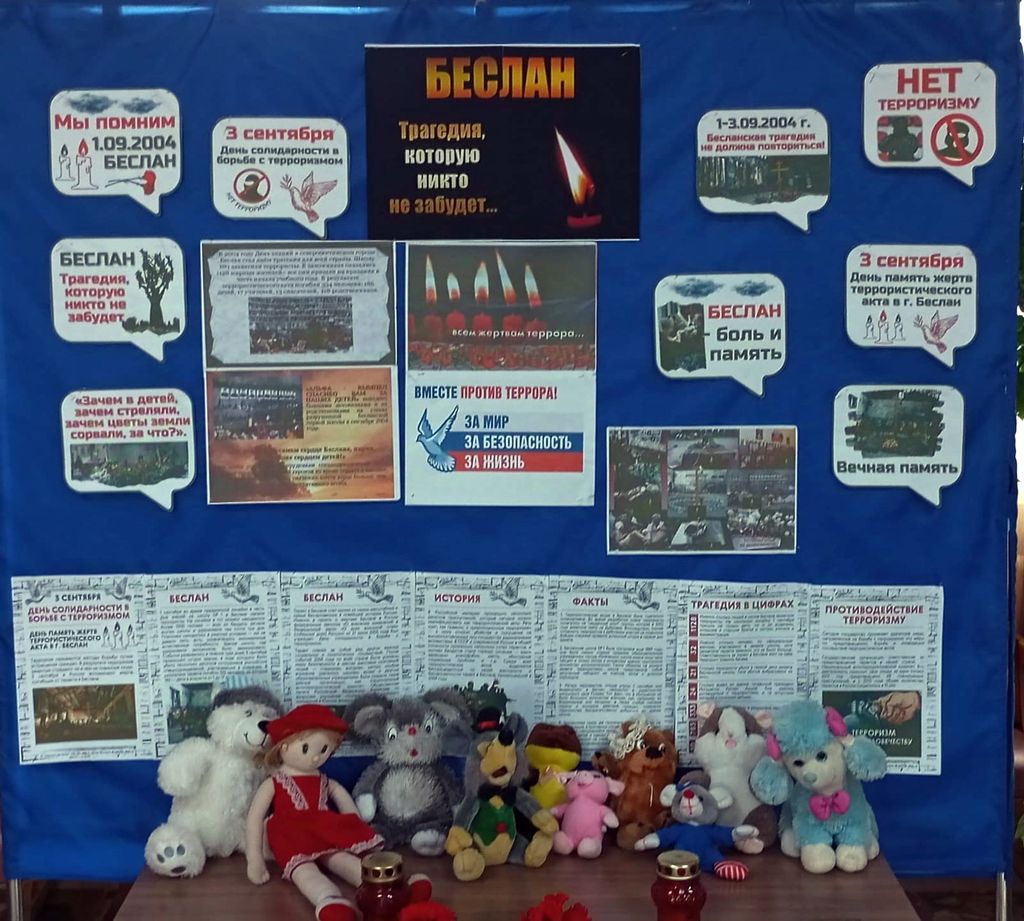 К мероприятию была оформлена тематическая выставка «Беслан. Трагедия, которую никто не забудет…»