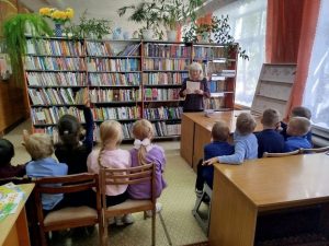 Библиотекарь провела для ребят экскурсию, познакомила с библиотекой, рассказала, что такое «книжный фонд», «читальный зал», «абонемент».