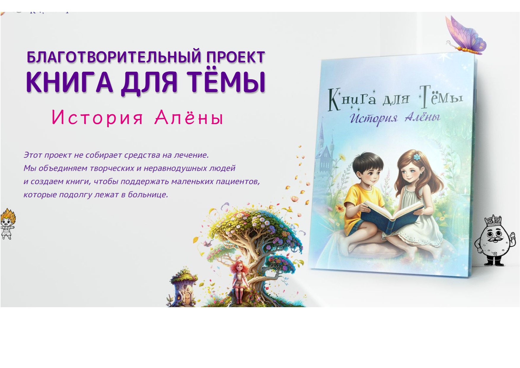 Сборник «Книга для Тёмы. История Алёны» еще готовится к выпуску. Сейчас идет работа по его составлению и печати. Но, в магазинах этого сборника не получится увидеть, потому что все книги будут развезены в детских больницы и подарены маленьким пациентам.