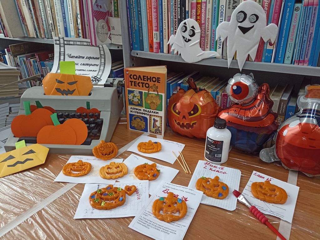 Все участники игровой программы с удовольствием поучаствовали в мастер-классе «Нарядная тыква». В рамках мастер-класса прошел обзор книги «Солёное тесто: лепим поделки и сувениры» из серии «Рукодельница». Дети познакомились с полезными практическими советами из книги, узнали об особенностях изготовления поделок из солёного теста. У всех получились забавные нарядные тыквы, а также участники мастер-класса отметили, что каждая тыква похожа на своего мастера. В рамках игровой программы состоялся просмотр-обсуждение мультфильма «Университет монстров». В обсуждении затрагивались темы о том, как преодолевать свои страхи и неуверенность на примере главного героя, а также о том, что значит настоящая крепкая дружба. Были затронуты и важные вопросы о том, что все герои мультфильма разные, но их объединяет совместная командная работа и уважение к особенностям друг друга. Участникам мероприятия была представлена подборка книг тематической книжной выставки «Прочитай страшилки, если не боишься». Игровая программа получила много положительных отзывов, а в библиотеку снова пришли новые читатели.