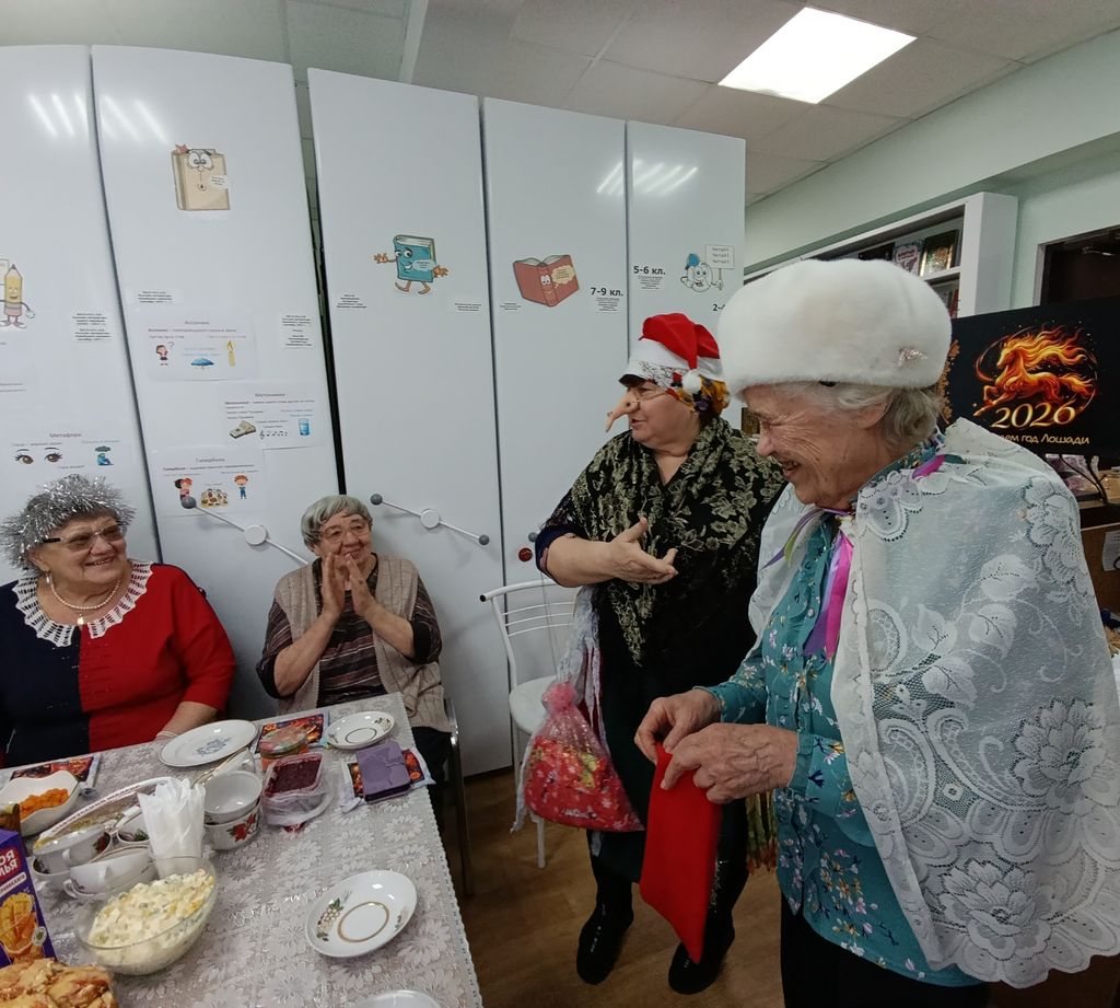 В этот вечер, возле нарядной ёлочки, было много сюрпризов и подарков, присутствующие отвечали на вопросы викторины, звучали стихи и поздравления. Участницы женского клуба «Веста», нарядившись в сказочных героев, дарили присутствующим подарочки.