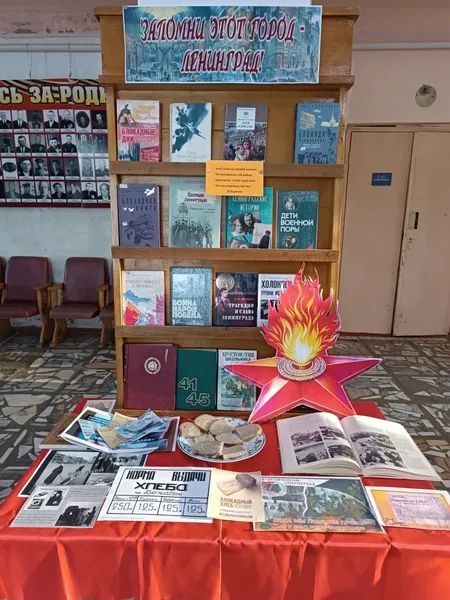К мероприятию в Доме культуры библиотекарь оформила книжную выставку «Запомни этот город Ленинград».