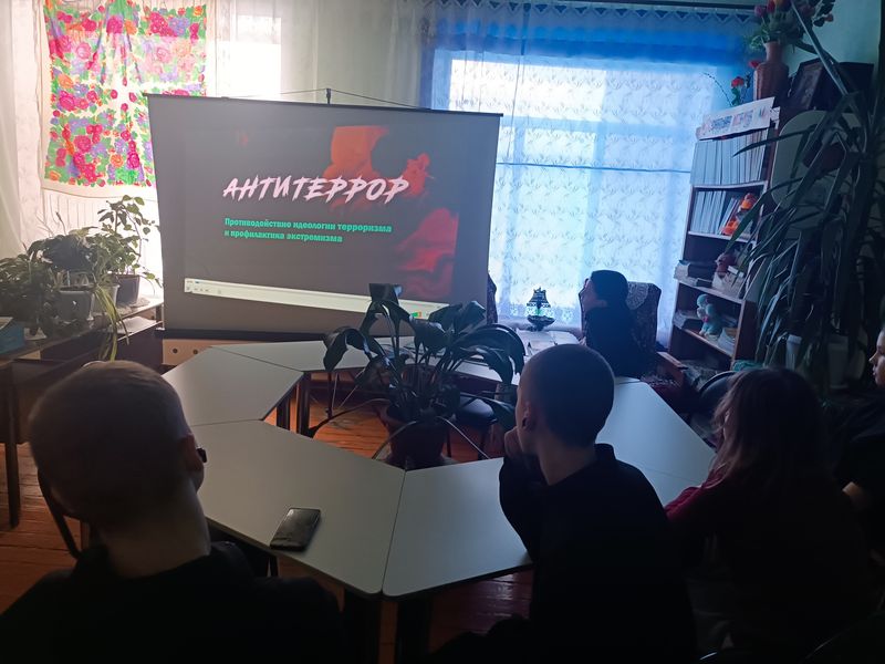 Вначале мероприятия библиотекарь рассказала, что такое экстремизм и терроризм, кто организует теракты, как не попасть под влияние террористов, угрозы в соцсетях, чатах и мессенджерах и об ответственности за совершение преступлений экстремистской и террористической направленности. Ребята посмотрели видеоролик «Антитеррор. Противодействие идеологии терроризма и профилактика экстремизма». Ребята сделали вывод — вместе мы сможем противостоять терроризму и экстремизму, а главное не позволять себя запутать и стать пешками в их опасной игре. И пообещали быть осторожными и бдительными.