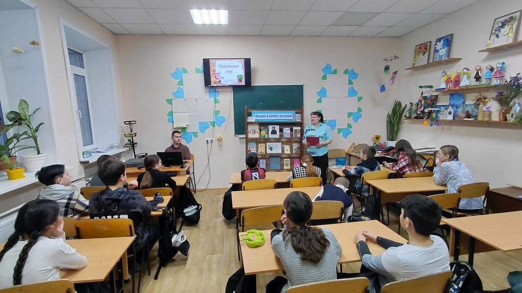 Библиотекари рассказали о значении А.С. Пушкина для русской культуры, напоминая ключевые вехи его биографии. Ребята вспоминали стихотворения, любимые сказки и отгадывали загадки. Была подготовлена книжная выставка «Пушкин в памяти потомков». Так через слово и образ, ребята прикоснулись к наследию Пушкина и, возможно, для кого-то из них этот день стал началом долгой дружбы с великим поэтом.