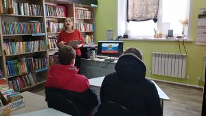 На встречу пришли ученики 9 класса Маякской средней школы. Урок начался с рассказа библиотекаря о военных. Эта профессия — не просто работа, это призвание. Военный служит ей всю жизнь.