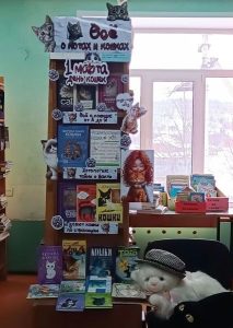 К мероприятию в библиотеке была оформлена книжная выставка «Все о котах и кошках».