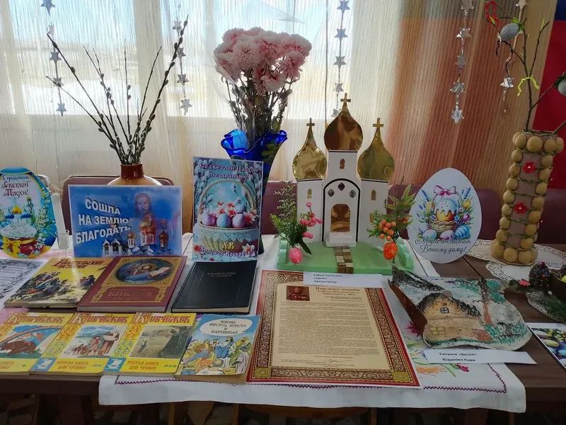 Для посетителей была организована книжная выставка «Сошла на землю благодать». На ней были представлены издания, рассказывающие о библейских событиях, связанных с воскресением Христа, пасхальной символике и обрядах, передаваемых из поколения в поколение. Книги стали светлыми окнами в прошлое, раскрывая глубину и красоту православного праздника.
