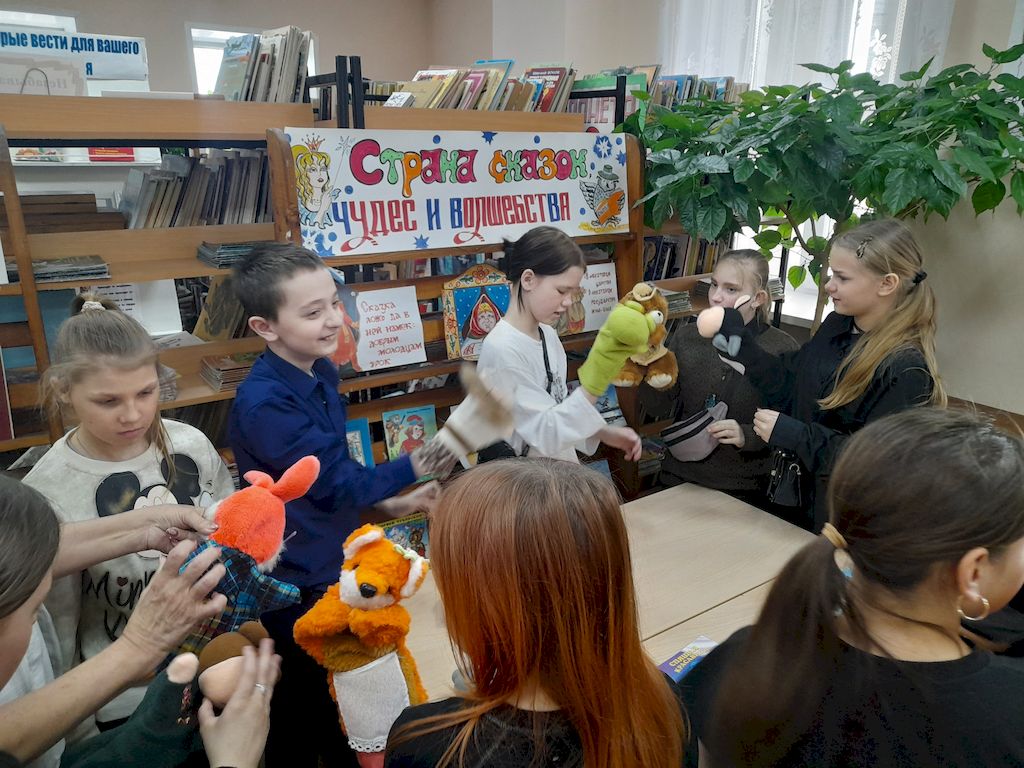 Первыми гостями стали ученики младших классов. Они окунулись в волшебный мир сказок народов нашей страны, таких как чукотские «Медведь-лежебока» и «Сказки Чаучу», а также татарская сказка Д. Тарджеманова «Шуктуган». Дети не только слушали истории, но и разыгрывали их с помощью кукол-перчаток. Библиотекари помогали им, предлагая легкие книжки с подсказками. Атмосфера была наполнена радостью и любопытством!