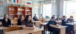 Библиотекарь рассказала школьникам о событиях апреля 1986 года, когда произошла авария на Чернобыльской АЭС, а также о её последствиях. Учащиеся посмотрели презентацию «Трагедия Чернобыля», послушали рассказы очевидцев и фильм МЧС России об аварии.