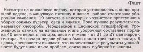 урожай. Если внедрять современные технологии, использовать новую технику и сорта