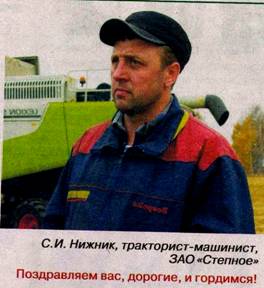 ХОЗЯЙСТВУ" НИЖНИК Сергей Иосифович - тракторист-машинист закрытого