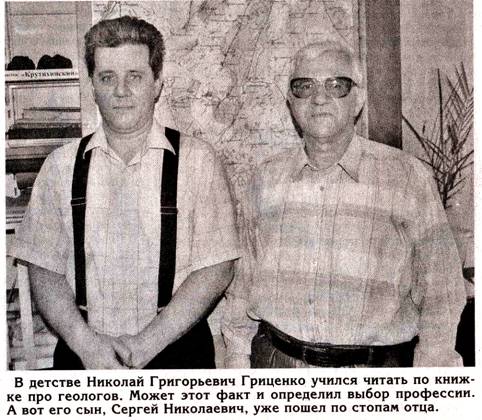 ГРИЦЕНКО и участковому геологу предприятия Сергею Николаевичу ГРИЦЕНКО.