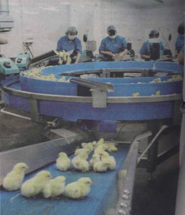 года цыплята доставляются на вакцинацию на конвейере, попадают сразу в руки