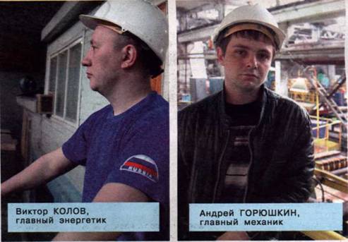 Сарычев, главный энергетик Андрей Горюшкин и главный механик Виктор Колов.