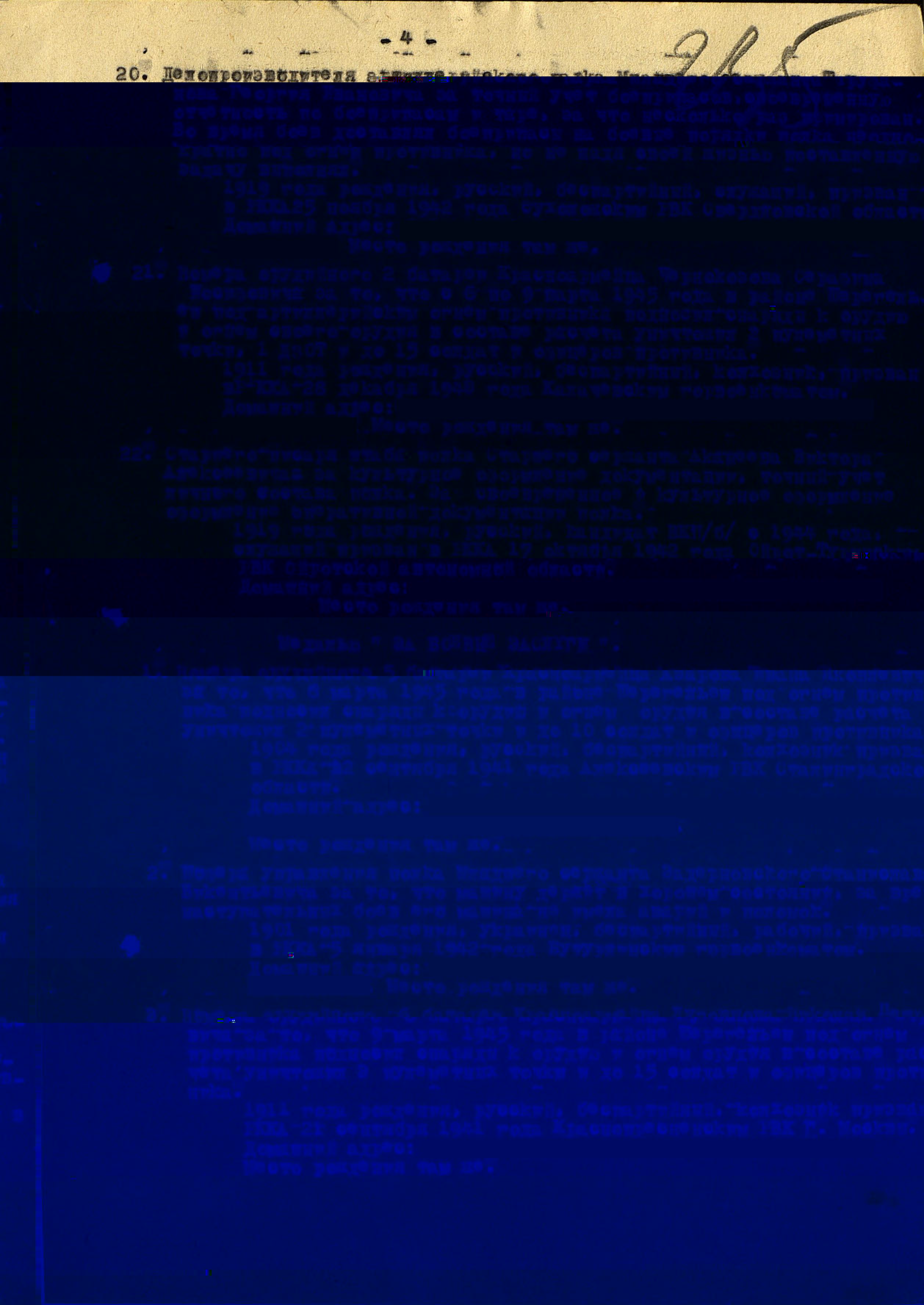 РЯДОВОЙ, родился в 1918 году в Искитимском районе НСО. Призван Искитимским РВК НСО 15 июля 1941 года. Воевал в 1320 стрелковом полку 413 стрелковой дивизии. Пропал без вести в ноябре 1941 года. НАГРАЖДЁН МЕДАЛЬЮ «ЗА ОТВАГУ», ДВУМЯ МЕДАЛЯМИ «ЗА БОЕВЫЕ ЗАСЛУГИ»