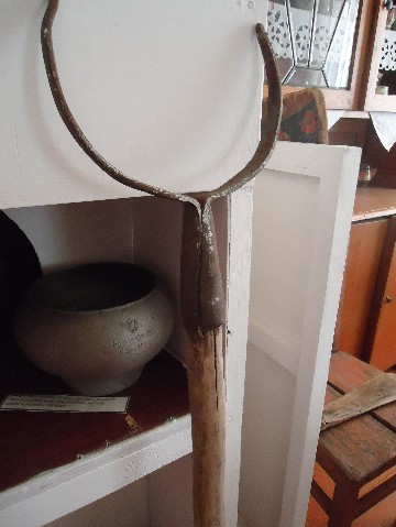 Ухват (вилы, ожег, рогатина бабья, рогач, 1930-х г. Передан в краеведческий музей от жителей д.Бородавкино, семьи Гончаровых. Устройство для передвигания горшков и чугунов в печи, с помощью которого их можно вынуть или установить в печь. | |