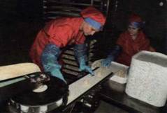 коллектив цеха состоял из 16 человек, а распил птицы производился ручными